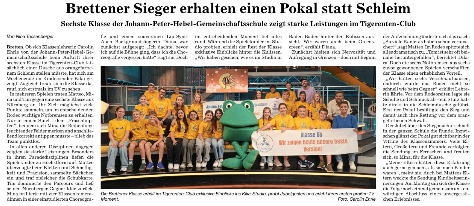 Der Sieg der Klasse 7b beim Tigerentenclub wird ausgestrahlt.